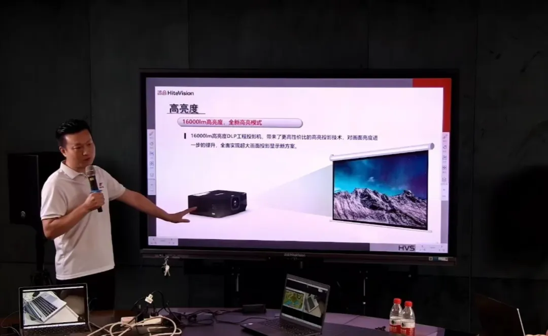交流會的第二部分議程聚焦于鴻合激光工程投影解決方案,鴻合智能分享了其8000流明以上工程投影解決方案。分享了高亮度投影技術如何在教育教學環(huán)境中創(chuàng)造出震撼的視覺效果,如何為學習過程中增添沉浸感,從而提高學生學習的興趣和積極性。