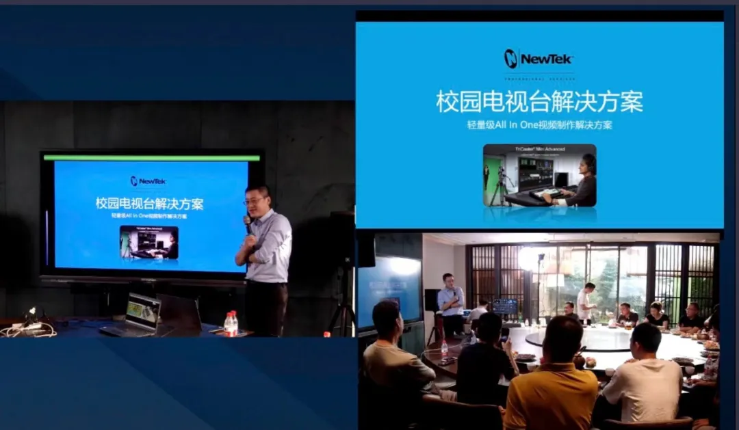 為了促進更加有效的互動與交流體驗,本次產品方案交流會運用Vizrt產品搭載NETGEAR提供的專業(yè)交換機進行同步線上直播。會上分享了captercast多視角錄播系統(tǒng)及校園運動會直播3play2慢動作系統(tǒng)、mini校園書包便攜直播間系統(tǒng)等。